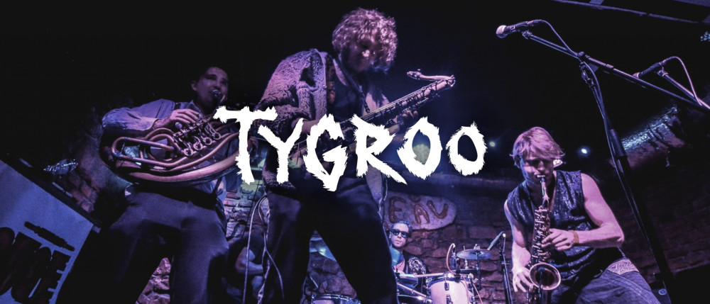 Tygroo hrají na dechy a bicí, občas přidají akordeon. Jejich hudba je divokou směsicí elektronické taneční hudby, balkánu, jazzu, a rapu. V Klubovně dají energický předvánoční set.
